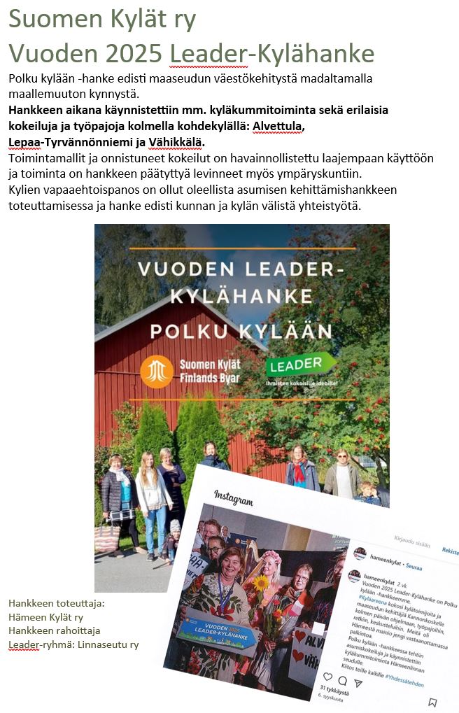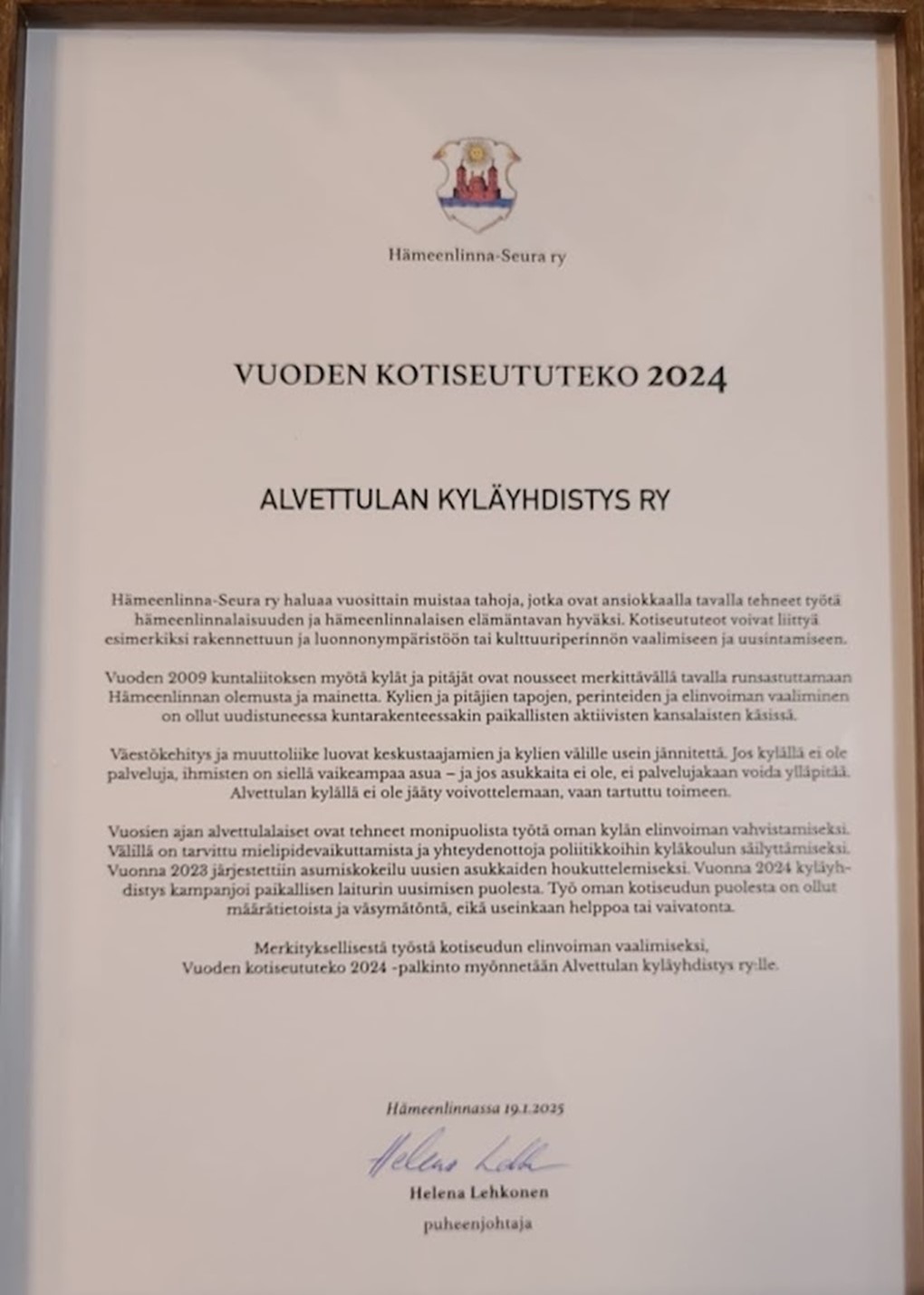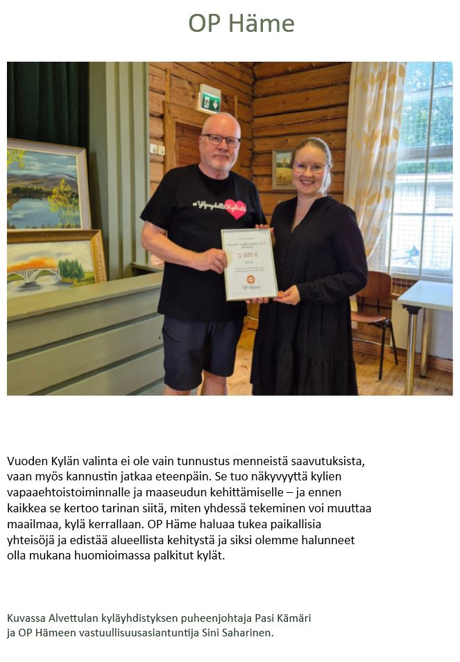 Alvettula on vuoden kylä Kanta-Hämeessä 2025, Yle »